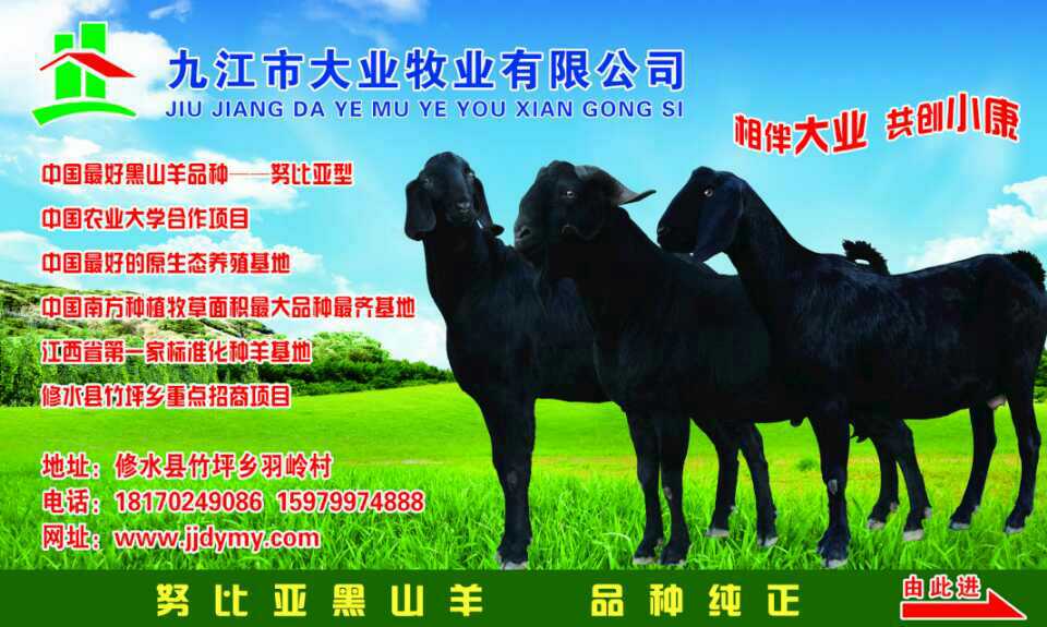 九江市大業(yè)牧業(yè)有限公司是努比亞黑山羊,集養(yǎng)殖、育種、科研、推廣服務于一體的大型正規(guī)化養(yǎng)殖供應地,是江西省畜牧扶貧特種養(yǎng)殖重點推廣項目。本牧業(yè)本著“至誠至信,合作共贏”的理念,始終堅持以誠為本,以信為道,以優(yōu)為勝的服務態(tài)度,始終堅持對客戶負責,讓客戶滿意的原則,每年為中國中部地區(qū)繁育大批量的特種努比亞黑山羊,成為業(yè)內(nèi)的佼佼者。