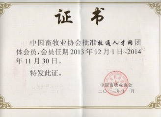 中國(guó)畜牧業(yè)協(xié)會(huì)會(huì)員證書(shū)