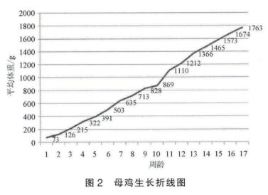 由母雞生長折線圖可知,1-17周齡為母雞生長高峰期,從第18周齡開始生長減緩、增重速度開始下降。18周齡前飼料轉(zhuǎn)化率、飼料報(bào)酬高,此時(shí)母雞已達(dá)上市體重,經(jīng)濟(jì)效益最好。