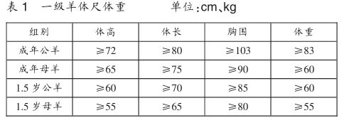 注:一級(jí)羊中的優(yōu)秀個(gè)體,成年公羊體重90kg以上、成年母羊體重68kg以上的,或者有特殊種用價(jià)值的可列為特級(jí)羊。選留后備種用公羔、母羔必須是初生重大、發(fā)育良好且體型、外貌符合品種標(biāo)準(zhǔn)羔羊。選留的公羔、母羔秋季體重必須分別達(dá)到40kg和35kg以上。