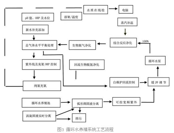 ?、莩淙爰冄酰貉h(huán)水系統(tǒng)使用液氧,采用納米氣石釋放純氧混合溶解、水氣對(duì)流的方法,使氧氣始終被水流壓迫全部溶解;氧氣的利用率幾乎達(dá)到100%,溶解氧的飽和率控制在100%-150%。充分溶解氧氣的水流再重新進(jìn)入養(yǎng)殖池,從而完成整個(gè)系統(tǒng)的循環(huán)。