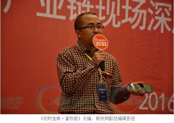《農(nóng)財(cái)寶典·畜牧版》主編、新牧網(wǎng)副總編輯彭進(jìn)致辭,他祝賀會(huì)議成功召開(kāi),分享了農(nóng)財(cái)寶典和新牧網(wǎng)能夠給養(yǎng)豬業(yè)帶來(lái)的四大增值服務(wù):數(shù)據(jù)搜索,價(jià)值判斷,平臺(tái)連接,行業(yè)維權(quán)。