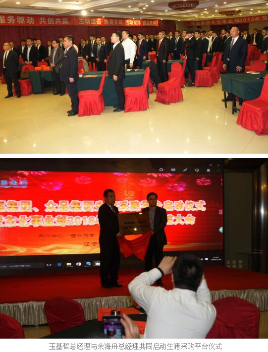 2016年3月29日,偉嘉集團與眾品集團生豬采購平臺啟動儀式在沈陽國興大酒店成功舉辦。偉嘉集團東北大區(qū)總裁玉基哲先生,華北事業(yè)部總經(jīng)理張廣新先生,偉嘉集團人力資源中心副總經(jīng)理齊利軍先生,偉嘉集團生豬產(chǎn)業(yè)鏈聯(lián)盟合作項目總監(jiān)、南方市場部運營總監(jiān)許秋先生,長春眾品公司總經(jīng)理余海舟先生,眾品農(nóng)牧公司總經(jīng)理助理原衛(wèi)平先生,長春眾品原料部部長孫海仁先生以及東北事業(yè)部全體員工出席本次會議。