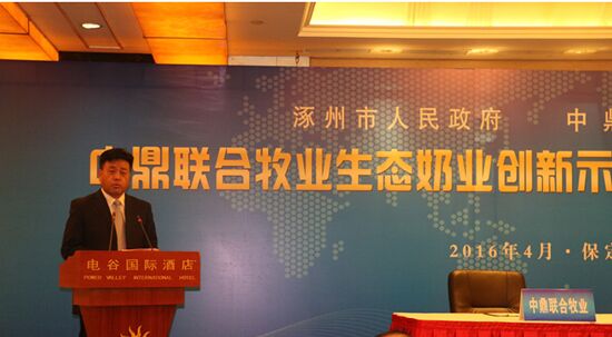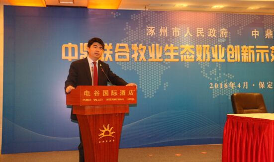 在簽約儀式上,涿州市市長(zhǎng)王彥清從地理區(qū)位、交通配套、基礎(chǔ)設(shè)施、產(chǎn)業(yè)資源和歷史人文等方面分析了涿州的各項(xiàng)優(yōu)勢(shì),王彥清表示“涿州市緊緊圍繞建設(shè)“京畿文化生態(tài)名城,世界城市功能新區(qū)”的總目標(biāo),聚焦“搶抓新機(jī)遇、建設(shè)新涿州”的總?cè)蝿?wù),深入推進(jìn)“文化引領(lǐng)、產(chǎn)業(yè)振興、創(chuàng)新驅(qū)動(dòng)、區(qū)域統(tǒng)籌”四大主體戰(zhàn)略,通過(guò)實(shí)施園區(qū)建設(shè)戰(zhàn)役拓空間、強(qiáng)功能、聚產(chǎn)業(yè)、謀創(chuàng)新,打造了一批產(chǎn)業(yè)和功能的承接平臺(tái),中鼎牧業(yè)作為河北省最大的創(chuàng)新型奶農(nóng)聯(lián)合體入駐涿州,對(duì)貫徹京津冀協(xié)同發(fā)展戰(zhàn)略和河北省綠色崛起戰(zhàn)略,打造京津冀奶業(yè)一體化協(xié)同發(fā)展和現(xiàn)代生態(tài)奶業(yè)的典范,積極推動(dòng)本市奶業(yè)發(fā)展具有深遠(yuǎn)意義”。涿州市人民政府將提升服務(wù)職能,在項(xiàng)目基礎(chǔ)設(shè)施配套、項(xiàng)目用地、項(xiàng)目規(guī)劃建設(shè)等方面成立專項(xiàng)服務(wù)小組,更快、更好、更有效地確保項(xiàng)目落地。