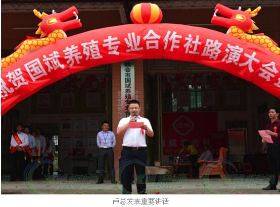 佛山市高明通威飼料有限公司總經(jīng)理盧運進發(fā)表重要講話。盧總指出農(nóng)民養(yǎng)殖合作社的產(chǎn)生是社會主義市場經(jīng)濟條件下的制度創(chuàng)新;它可向廣大農(nóng)民朋友提供全方位的服務(wù),為養(yǎng)殖戶降低養(yǎng)殖成本、也為促進農(nóng)牧業(yè)發(fā)展、農(nóng)民增收和新農(nóng)村建設(shè)作出了重要貢獻,高明通威也將一如既往的全力支持國斌合作社的發(fā)展和壯大提供最優(yōu)質(zhì)的產(chǎn)品及最貼心的服務(wù)。