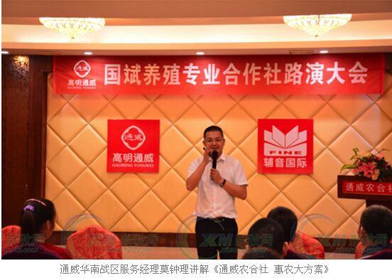 國斌養(yǎng)殖專業(yè)合作社理事長馬國斌先生為本次活動致辭,他表示,在高明通威牽頭搭建的平臺支持下,國斌合作社定能幫廣大養(yǎng)戶實現(xiàn)“養(yǎng)豬大過?!薄?br>