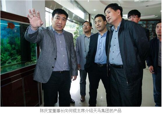 何錕主席深入考察了天馬集團(tuán)二期工程現(xiàn)場(chǎng),興致勃勃地觀看了天馬集團(tuán)產(chǎn)品樣品,詳細(xì)了解相關(guān)特種水產(chǎn)養(yǎng)殖動(dòng)物。在聽(tīng)取了陳慶堂董事長(zhǎng)對(duì)天馬集團(tuán)十多年來(lái)興企、治企、強(qiáng)企的發(fā)展歷程和未來(lái)的中長(zhǎng)期戰(zhàn)略發(fā)展規(guī)劃的詳細(xì)介紹后,他對(duì)陳慶堂董事長(zhǎng)的治企理念表示由衷地欽佩并高度贊賞天馬集團(tuán)跨越發(fā)展取得的成就。他表示,天馬集團(tuán)強(qiáng)大的研發(fā)實(shí)力、生產(chǎn)實(shí)力,先進(jìn)的管理模式,優(yōu)秀的企業(yè)文化和強(qiáng)勁的發(fā)展態(tài)勢(shì)讓他深感震撼。
