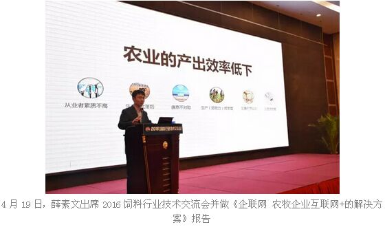 薛素文從當(dāng)前農(nóng)業(yè)行業(yè)發(fā)展的主要問題談起,指出產(chǎn)業(yè)互聯(lián)網(wǎng)時代最大的機會在農(nóng)業(yè)企業(yè)。隨后他介紹了在互聯(lián)網(wǎng)環(huán)境下,農(nóng)信互聯(lián)的做法,并詳細(xì)介紹了農(nóng)牧行業(yè)“互聯(lián)網(wǎng)+”的解決方案——企聯(lián)網(wǎng)。