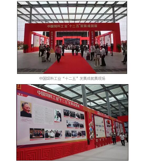 在“十二五”期間,飼料工業(yè)的發(fā)展受到了國家領(lǐng)導(dǎo)人的高度關(guān)注,在發(fā)展成就展的前言部分展示了2013年9月30日大北農(nóng)集團董事長邵根伙博士向習(xí)近平總書記匯報農(nóng)業(yè)生物技術(shù)進展和2015年9月14日國務(wù)院副總理汪洋、農(nóng)業(yè)部部長韓長賦、北京市市長王安順等領(lǐng)導(dǎo)一行以“互聯(lián)網(wǎng)+農(nóng)業(yè)”為主題調(diào)研農(nóng)信互聯(lián)公司的照片。