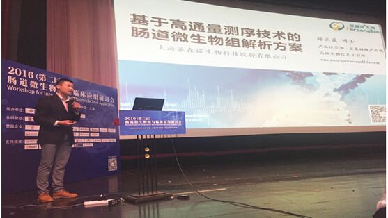 派森諾生物作為國內(nèi)運用高通量測序技術(shù)解析微生物組的領(lǐng)導(dǎo)者,有幸成為大會的主要贊助商。本公司宏基因組產(chǎn)品線的薛正晟博士作了題為“基于高通量測序技術(shù)的腸道微生物組解析方案”的演講,從關(guān)注菌群結(jié)構(gòu)和多樣性的靶向測序、關(guān)注菌群功能活性及其與人體間相互協(xié)作關(guān)系的宏基因組De novo鳥槍法測序、以及關(guān)注菌群代謝表達譜的宏轉(zhuǎn)錄組測序三個方向,系統(tǒng)深入地介紹了高通量測序技術(shù)(尤其是第三代單分子實時測序技術(shù))的廣泛應(yīng)用,并呼吁廣大科研和醫(yī)護人員將臨床醫(yī)學(xué)與腸道微生物組學(xué)更好地結(jié)合、應(yīng)用。