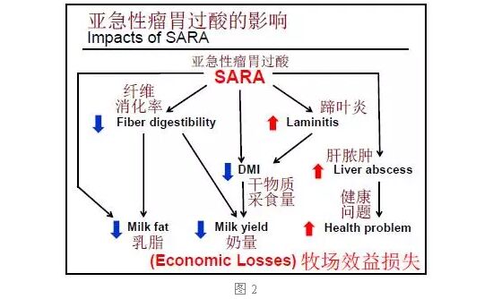 瘤胃發(fā)酵速度過快,咀嚼/反芻不足,對瘤胃發(fā)酵產(chǎn)酸吸收的不足。