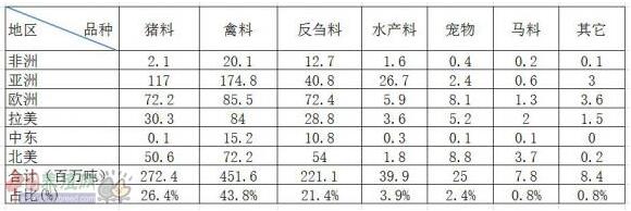 (5) 寵物飼料:2016年寵物飼料產(chǎn)量為2500萬噸,占比2.4%,美國保持首位,亞洲和歐洲也有所增長。