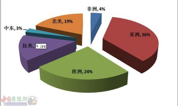 從2012年開始,全球飼料產(chǎn)量9.54億噸,到2016年突破10億噸,累計增長了19%,今年飼料廠數(shù)量的下降也意味著行業(yè)整合度和生產(chǎn)效率均不斷提升。1、 2016全球不同區(qū)域飼料生產(chǎn)情況