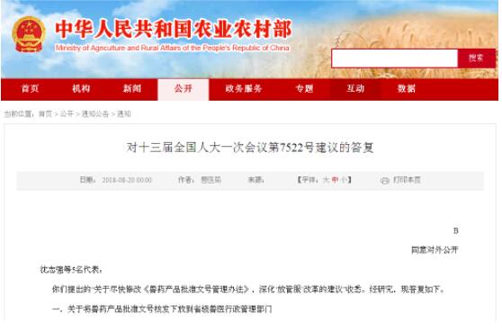 農(nóng)業(yè)農(nóng)村部:獸藥產(chǎn)品批準(zhǔn)文號核發(fā)不會下放
