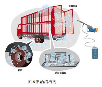 5.3 生豬卸載后,承運人應(yīng)就近經(jīng)專業(yè)的車輛清洗、消毒中心清洗、消毒,并保留相關(guān)票據(jù)或按照本手冊規(guī)定的清洗消毒程序?qū)囕v進行清洗消毒,達到清洗消毒合格標(biāo)準(zhǔn)。