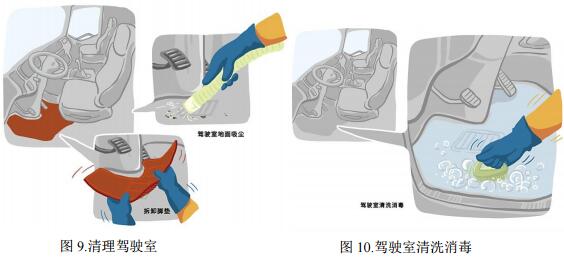 駕駛室的清洗消毒和干燥應(yīng)與車輛同步進行。
