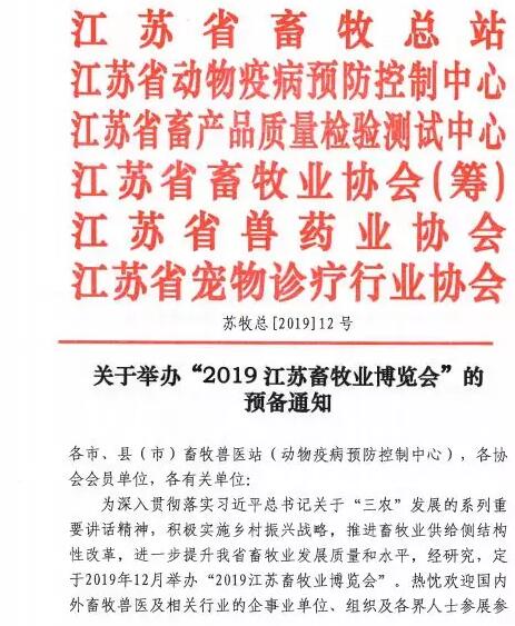 1、大會名稱:2019華東地區(qū)畜牧業(yè)博覽會暨2019第四屆江蘇畜牧業(yè)博覽會