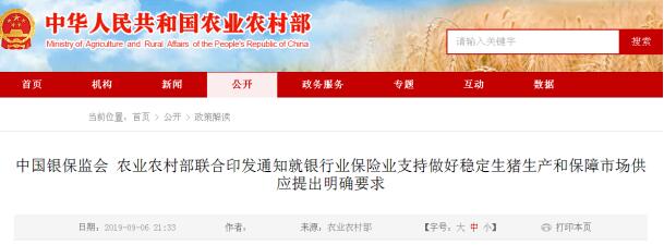 銀保監(jiān)、農(nóng)業(yè)農(nóng)村部聯(lián)合印發(fā)通知加大對生豬產(chǎn)業(yè)信貸支持
