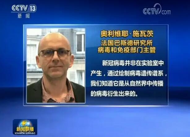 法國(guó)巴斯德研究所病毒和免疫部門(mén)主管奧利維耶·施瓦茨日前也表示,新冠病毒并非在實(shí)驗(yàn)室中產(chǎn)生,通過(guò)繪制病毒遺傳譜系,我們知道它是從自然界中傳播的病毒衍生出來(lái)的。在不同的動(dòng)物中,特別是穿山甲和蝙蝠體內(nèi)找到了非常相似的病毒。