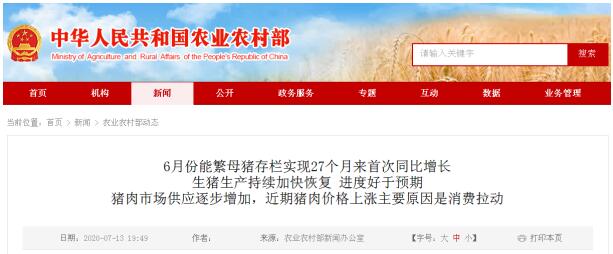 該負(fù)責(zé)人表示,豬肉是重要的民生產(chǎn)品,農(nóng)業(yè)農(nóng)村部按照黨中央、國(guó)務(wù)院決策部署,把恢復(fù)生豬生產(chǎn)作為今年農(nóng)業(yè)農(nóng)村工作的重大任務(wù),強(qiáng)化責(zé)任落實(shí),狠抓政策落地,妥善應(yīng)對(duì)新冠肺炎疫情影響,抓大場(chǎng)帶小戶加快補(bǔ)欄增養(yǎng),持續(xù)加強(qiáng)非洲豬瘟防控,取得了明顯成效。但是也要看到,后期生豬穩(wěn)產(chǎn)保供任務(wù)依然艱巨,要持續(xù)加大工作力度,努力保持生豬生產(chǎn)恢復(fù)的良好勢(shì)頭。一是進(jìn)一步抓好責(zé)任落實(shí)。近期農(nóng)業(yè)農(nóng)村部將聯(lián)合發(fā)展改革委等部門開(kāi)展生豬穩(wěn)產(chǎn)保供工作和相關(guān)政策落實(shí)情況督查,對(duì)標(biāo)檢查每個(gè)省的半年目標(biāo)任務(wù)完成進(jìn)度,壓實(shí)地方責(zé)任。二是進(jìn)一步促進(jìn)政策落地。農(nóng)業(yè)農(nóng)村部將會(huì)同有關(guān)部門落實(shí)好生豬養(yǎng)殖用地、抵押貸款試點(diǎn)和環(huán)評(píng)等政策措施,盡快將補(bǔ)助資金兌現(xiàn)到場(chǎng)到戶。三是進(jìn)一步加強(qiáng)指導(dǎo)服務(wù)。指導(dǎo)生豬規(guī)模養(yǎng)殖場(chǎng)改善基礎(chǔ)設(shè)施條件,加快項(xiàng)目建設(shè)進(jìn)度,盡快形成產(chǎn)能。通過(guò)龍頭企業(yè)帶動(dòng)、財(cái)政資金扶持、實(shí)用技術(shù)培訓(xùn)等多途徑支持中小養(yǎng)殖場(chǎng)戶加快補(bǔ)欄增養(yǎng)。四是毫不松懈抓好非洲豬瘟防控。繼續(xù)嚴(yán)防嚴(yán)控,落實(shí)落細(xì)常態(tài)化防控措施,繼續(xù)開(kāi)展重點(diǎn)區(qū)域和場(chǎng)點(diǎn)全覆蓋入場(chǎng)采樣檢測(cè),強(qiáng)化出欄檢疫、屠宰監(jiān)管和病死豬無(wú)害化處理等措施,阻斷疫情傳播渠道。