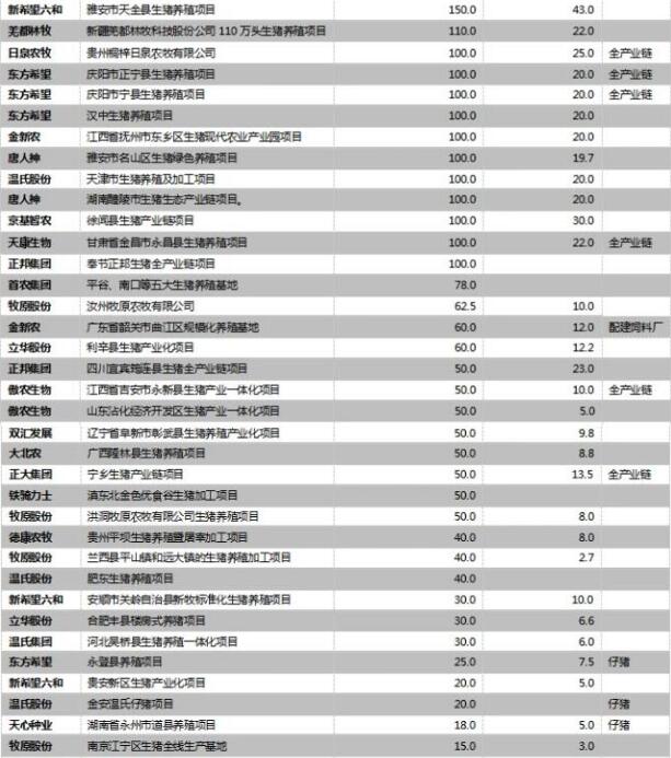 今年以來,各地在建和新建的生豬養(yǎng)殖項(xiàng)目概況如下表3,根據(jù)表中信息所示,分布在全國各地的57個(gè)生豬養(yǎng)殖項(xiàng)目總投資額近1000億元,按計(jì)劃這些項(xiàng)目在今年底以前或2021年內(nèi)就將全部或部分投產(chǎn),合計(jì)可提供至少4500萬頭生豬新增出欄量。而這還僅僅是全國新建養(yǎng)殖項(xiàng)目產(chǎn)能的一部分。