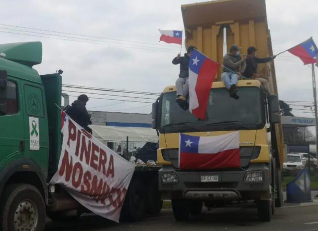 智利卡車(chē)司機(jī)封堵道路(圖:BioBio)