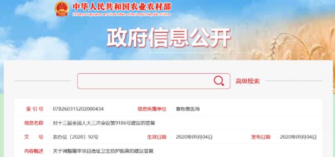 農業(yè)農村部:關于調整屠宰項目選址衛(wèi)生防護距離建議的回復