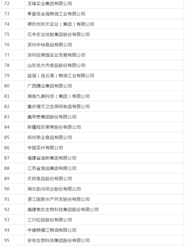 全國(guó)農(nóng)產(chǎn)品加工業(yè)100強(qiáng)企業(yè)名單