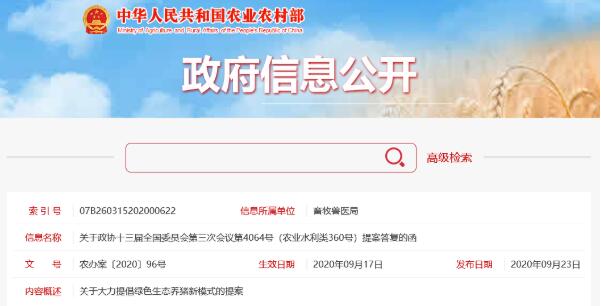 關于政協(xié)十三屆全國委員會第三次會議第4064號(農業(yè)水利類360號)提案答復的函