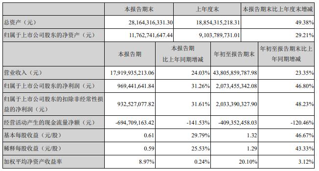 海大集團(tuán)10月27日公布2020年前三季度業(yè)績報告。公司2020年1-9月實現(xiàn)營業(yè)收入438.06億元,同比增長23.35%,歸屬于上市公司股東的凈利潤為20.73億元,同比增長46.80%;其中,第三季度公司實現(xiàn)營業(yè)收入179.20億元,同比增長24.03%,歸屬于上市公司股東的凈利潤為9.69億元,同比增加31.26%。