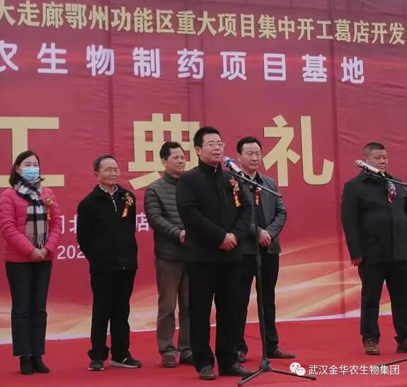 戢局長在致辭中指出,作為一家集研發(fā)、生產(chǎn)、銷售和技術(shù)服務(wù)為一體的專業(yè)從事動保制藥領(lǐng)域的科創(chuàng)型企業(yè),武漢金華農(nóng)生物制藥基地達(dá)產(chǎn)后,將為開發(fā)區(qū)經(jīng)濟(jì)社區(qū)發(fā)展增添新力量注入新活力。無論是建設(shè)還是建成運營,開發(fā)區(qū)將充分發(fā)揮“店小二”精神,為武漢金華農(nóng)生物公司提供優(yōu)質(zhì)、高效的服務(wù),確保項目早日盈利見效!期待企業(yè)在建設(shè)管理過程中,不斷加大技術(shù)投入,提升產(chǎn)品競爭力,爭取早日打造成為全國動保制藥行業(yè)的標(biāo)桿。