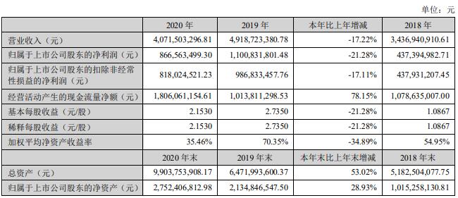 京基智農(nóng)3月26日披露年報(bào),公司2020年?duì)I業(yè)收入40.72億元,同比下降17.22%;歸屬于上市公司股東的凈利潤(rùn)8.67億元,同比下降21.28%。