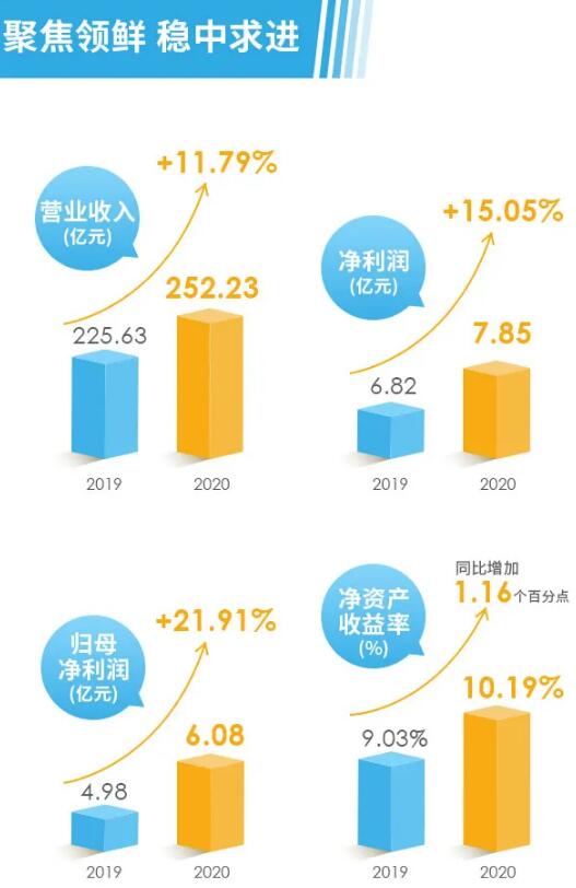 3月30日,光明乳業(yè)披露2020年年度報(bào)告,實(shí)現(xiàn)營業(yè)收入252.23億元,同比上升11.79%;實(shí)現(xiàn)凈利潤7.85億元,同比上升15.05%;歸屬于母公司所有者的凈利潤6.08億元,同比上升21.91%;基本每股收益0.50元,擬每股派現(xiàn)金紅利0.16元(含稅)。