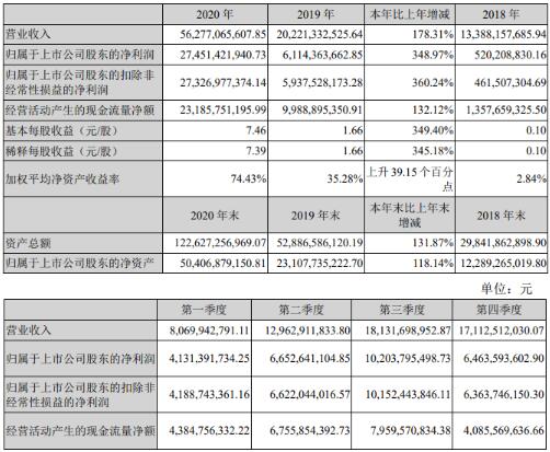 2020年,公司銷售生豬1,811.5萬頭,其中商品豬1,152.4萬頭(其中向全資子公司牧原肉食品有限公司銷售23.9萬頭),仔豬594.8萬頭,種豬64.3萬頭,實(shí)現(xiàn)營業(yè)收入562.77億元,同比增長178.31%,實(shí)現(xiàn)凈利潤303.75億元,同比增長379.37%。