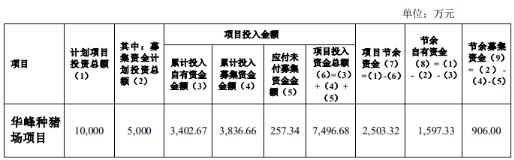 截至2020年12月3日,華峰種豬場項(xiàng)目已經(jīng)建設(shè)完成,達(dá)到預(yù)定可使用狀態(tài),公司決定對該項(xiàng)目進(jìn)行結(jié)項(xiàng),具體情況如下: