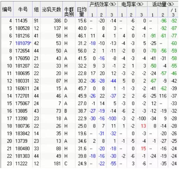 每天要有專(zhuān)職的獸醫(yī)人員去查看偏差報(bào)告,主要關(guān)注兩個(gè)指標(biāo),如果是二代計(jì)步器關(guān)注趴臥時(shí)間和活動(dòng)量,如果是一代計(jì)步器只能關(guān)注活動(dòng)量并通過(guò)電導(dǎo)率和班次產(chǎn)奶量來(lái)綜合分析,初步判斷出蹄病?;蛘呤瞧渌膊。缓笙律嵴业皆撆UJ(rèn)真仔細(xì)檢查直至找到真正的致病因。了解兩個(gè)概念,活動(dòng)量:本班次計(jì)步器累計(jì)的總步數(shù)減去上班次累計(jì)的總步數(shù)的差值,除以本班次與上班次擠奶的間隔時(shí)間,得到奶牛的每小時(shí)活動(dòng)量?;顒?dòng)量偏差:活動(dòng)量與當(dāng)班次前10天平均值比較,上升或下降的偏差百分比,在健康參數(shù)中設(shè)置的可接受的下降臨界值。
