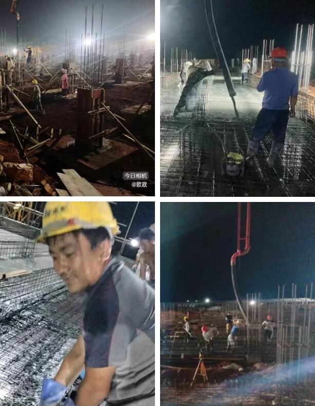 早上第一批次為4:00~10:30,下午15:30~凌晨4:00,盡力避開最高氣溫時間,協(xié)調(diào)各個班組連軸運轉(zhuǎn),各種工序無縫連接,充分利用夜間施工,最終實現(xiàn)了7月底封頂?shù)募榷繕恕?br>