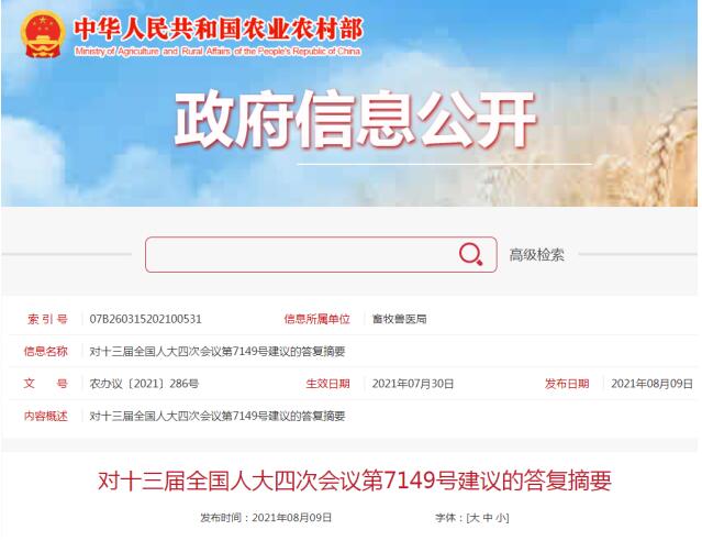 農(nóng)業(yè)農(nóng)村部近日在回復代表意見時表示,農(nóng)業(yè)農(nóng)村部高度重視畜禽養(yǎng)殖環(huán)節(jié)動物疫病防控工作,要求養(yǎng)殖主體嚴格落實動物防疫有關要求,及時有效處理處置與動物傳染病相關的廢棄物,阻斷動物疫病傳播途徑、維護生態(tài)環(huán)境安全。同時,在新修訂實施的《動物防疫法》中,明確規(guī)定了病死動物和病害動物產(chǎn)品無害化處理、動物診療機構診療廢棄物處置工作有關要求,為進一步推動畜禽養(yǎng)殖環(huán)節(jié)診療廢物處理提供了制度支撐。下一步,相關部門將加大調(diào)查研究力度,鼓勵支持引入更多有資質(zhì)的醫(yī)療廢棄物處理企業(yè)參與市場競爭,不斷健全完善畜禽養(yǎng)殖環(huán)節(jié)診療廢物處置管理制度,提高養(yǎng)殖環(huán)節(jié)診療廢物處理能力和水平。