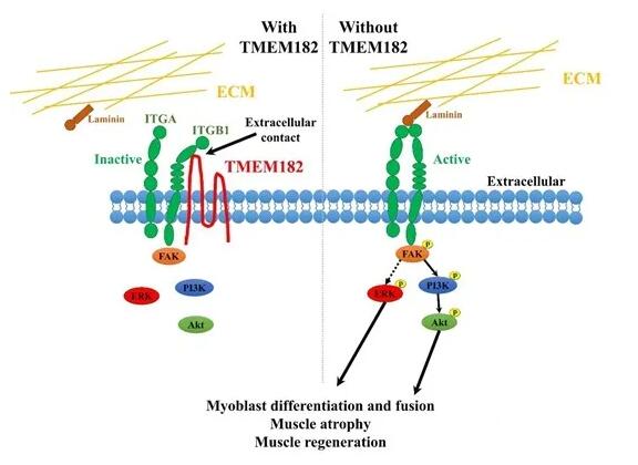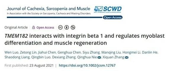 華南農(nóng)業(yè)大學(xué)動(dòng)物科學(xué)學(xué)院家禽遺傳育種研究團(tuán)隊(duì)在肌肉研究領(lǐng)域知名雜志Journal of Cachexia, Sarcopenia and Muscle(IF=12.91)在線發(fā)表了題為“TMEM182 interacts with integrin β1 and regulates myoblast differentiation and muscle regeneration”的研究論文。該研究成果發(fā)現(xiàn)了一個(gè)可影響肉雞產(chǎn)肉和脂肪沉積的關(guān)鍵基因TMEM182,并對(duì)該基因的作用機(jī)制進(jìn)行了詳細(xì)解析。