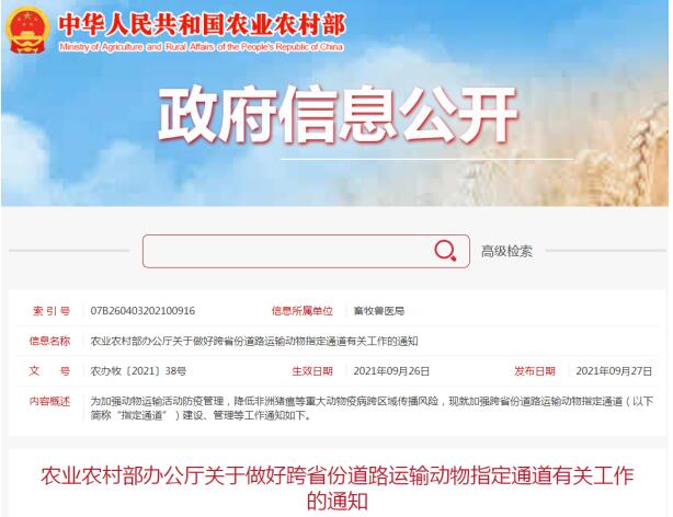 各省份要按照科學(xué)規(guī)劃、合理布局、安全便民、管理可行的原則,盡快確定并公布指定通道;已經(jīng)確定指定通道的,要定期開(kāi)展本省份及周邊區(qū)域動(dòng)物疫病、路網(wǎng)布局、畜禽流通等情況的分析研判,并綜合考慮已有站點(diǎn)資源、監(jiān)管力量配備、工作條件保障等因素,適時(shí)調(diào)整完善指定通道布局;要根據(jù)本地區(qū)實(shí)際,探索建設(shè)過(guò)省境運(yùn)輸動(dòng)物指定通道制度,創(chuàng)新監(jiān)管方式,推動(dòng)過(guò)省境運(yùn)輸動(dòng)物規(guī)范便捷通行。