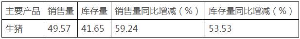 備注:生豬銷售量49.57萬頭,其中:對外銷售34.10萬頭,對集團內(nèi)部屠宰企業(yè)銷售15.47萬頭。