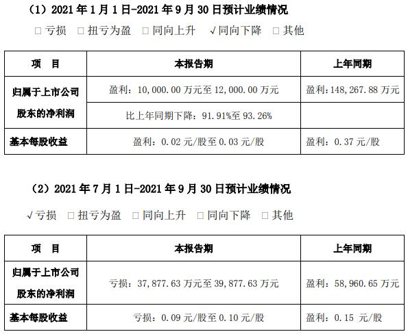 大北農10月15日公布2021年前三季度業(yè)績預告。預計2021年前三季度歸屬于上市公司股東的凈利潤1-1.2億元,同比下降91.91%-93.26%。預計第三季度虧損37,877.63-39,877.63萬元,同比下降163.90%-171.67%。