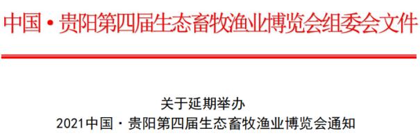 因此,原定于2021年11月12-13日在貴陽國際會議展覽中心 舉辦的“2021中國·貴陽第四屆生態(tài)畜牧漁業(yè)博覽會”“等同 期活動延期舉行,具體時間及有關事項另行通知。