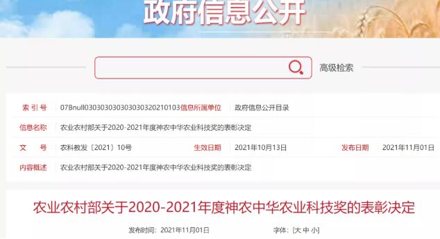 近日,農(nóng)業(yè)農(nóng)村部發(fā)布了關(guān)于2020-2021年度神農(nóng)中華農(nóng)業(yè)科技獎(jiǎng)的表彰決定,推進(jìn)實(shí)施創(chuàng)新驅(qū)動(dòng)發(fā)展戰(zhàn)略和鄉(xiāng)村振興戰(zhàn)略,充分發(fā)揮科技創(chuàng)新在推進(jìn)鄉(xiāng)村全面振興和農(nóng)業(yè)農(nóng)村現(xiàn)代化中的引領(lǐng)作用。