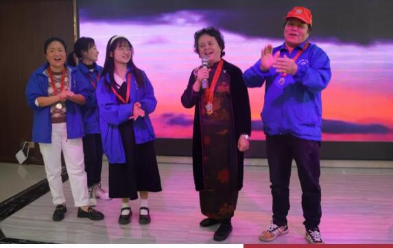 (邱漫玲帶領(lǐng)員工親友團(tuán)獻(xiàn)唱《謝謝了》)