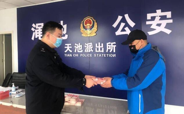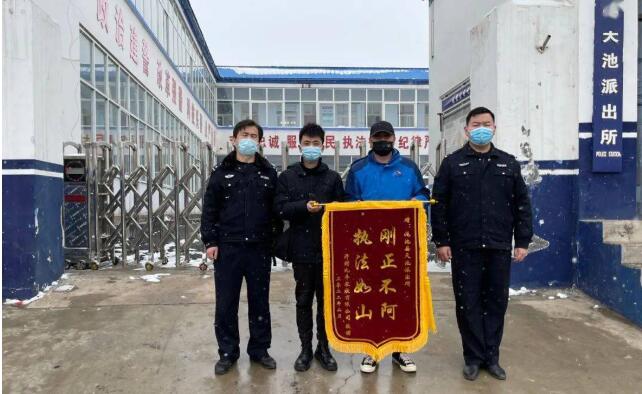 2022年2月18日早上,該所將31萬元現(xiàn)金退還于農(nóng)牧公司,公司負(fù)責(zé)人為天池派出所送來錦旗并表示衷心的感謝。