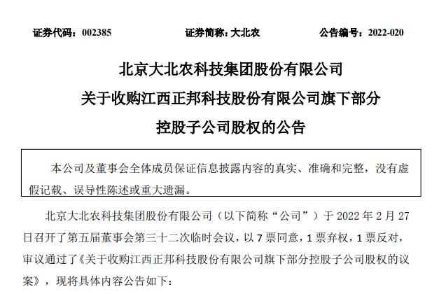 交易價(jià)超20億!大北農(nóng)公告,擬收購(gòu)正邦科技持有的8家公司股權(quán)