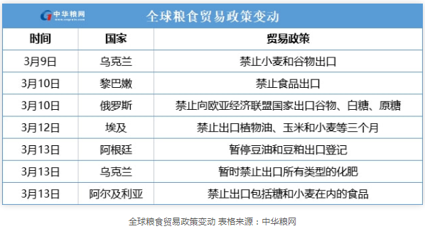 由于俄烏兩國(guó)都是農(nóng)業(yè)出口大國(guó),卻處于戰(zhàn)爭(zhēng)之中,導(dǎo)致大宗農(nóng)產(chǎn)品價(jià)格上漲,各國(guó)貿(mào)易保護(hù)主義抬頭。