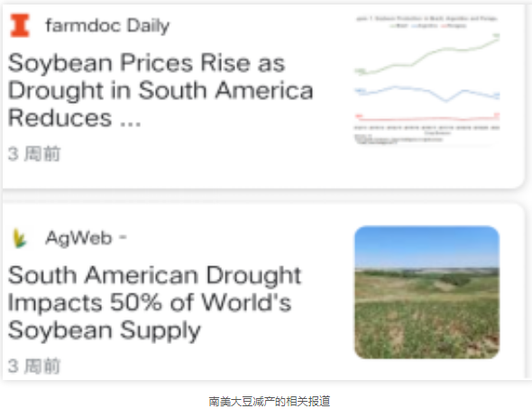 中國(guó)有64%的進(jìn)口大豆來(lái)自巴西和阿根廷。南美的大豆供應(yīng)出了問(wèn)題,中國(guó)的大豆當(dāng)然也會(huì)供不應(yīng)求,讓價(jià)格水漲船高。