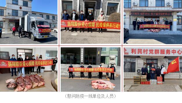 揚(yáng)翔股份北方區(qū)總裁孫文平總裁表示:“揚(yáng)翔公司希望能為社會貢獻(xiàn)自己的一份力量,為抗疫一線捐贈豬肉,希望能用我們企業(yè)的綿薄之力,為抗疫一線的工作人員們帶來信心,也為奮戰(zhàn)在一線的防疫人員帶來一份健康安全的飲食保障?!?br>